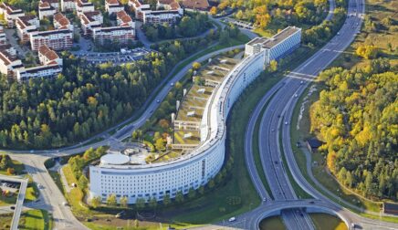 Byggnadens totalyta är 86 868 m2. Huset är huvudsakligen uppfört med betongelement och arkitekten tilldelades 1992 Betongelementföreningens Arkitekturpris.